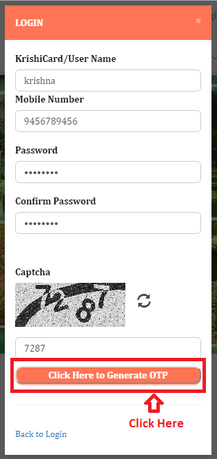 Once Password is entered Click Here to Generate OTP button will be visible.