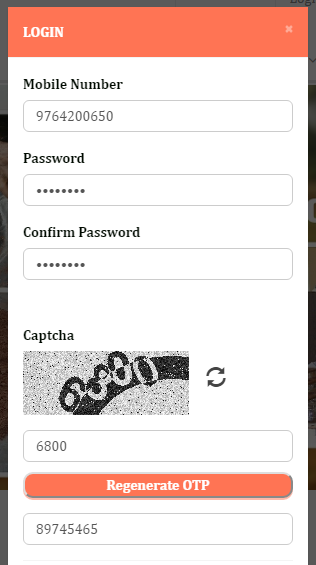Once Password is entered Click Here to Generate OTP button will be visible.
