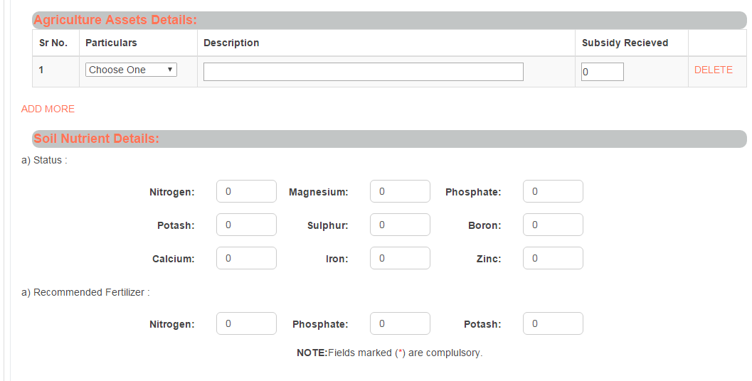 Land Details Section takes all the details of the lands of farmer.