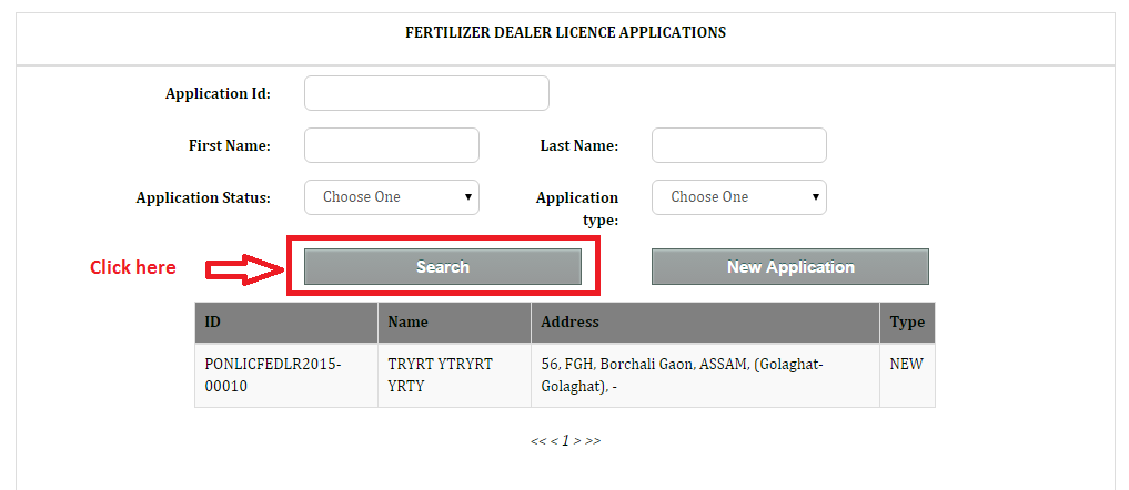 This section is used to search the applicant(s) entry depending upon the Application Id, Applicant Name and Application Status.
