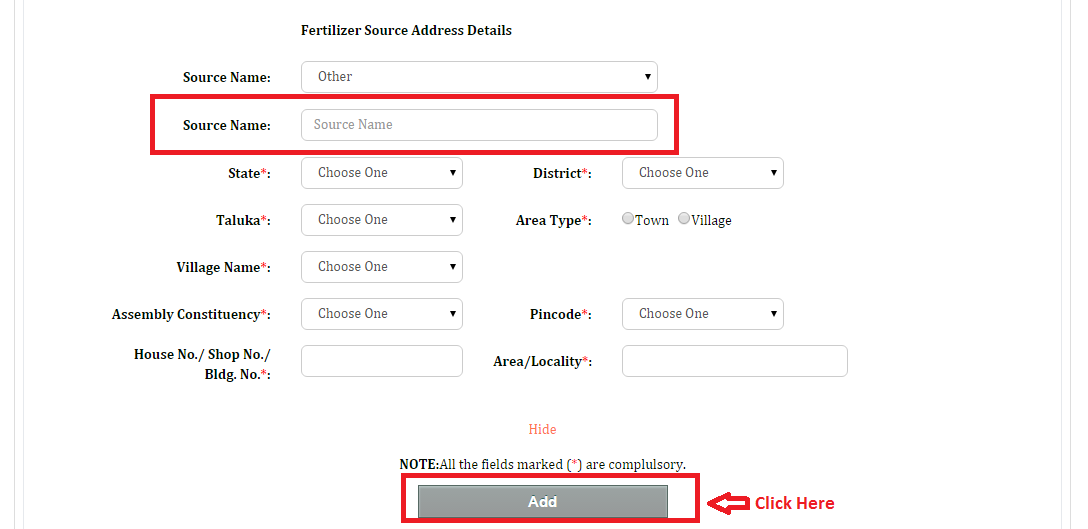 If the applicant wants to add fertilizer not present in drop down list, Select other option and enter the fertilizer name manually.